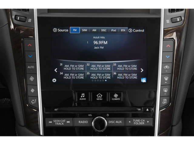 - Radio: AM/FM/CD w/MP3 Playback Capability -inc: HD radio, 6-speaker audio system, Radio Data System (RDS), speed-sensitive volume control, 2 USB connection ports play music for iPod interface, flash drive or other compatible devices, INFINITI InTouch dual display system w/LCD/VGA 8" upper and 7" lower color vehicle-information display and voice recognition for audio and vehicle information systems, INFINITI InTuition customizable environment for audio, SiriusXM satellite radio w/3-month trial subscription, SiriusXM Travel Link w/4-year complimentary trial subscription, steering wheel-mounted audio controls, dual in-glass diversity antennas and Bluetooth® hands-free phone system and streaming audio