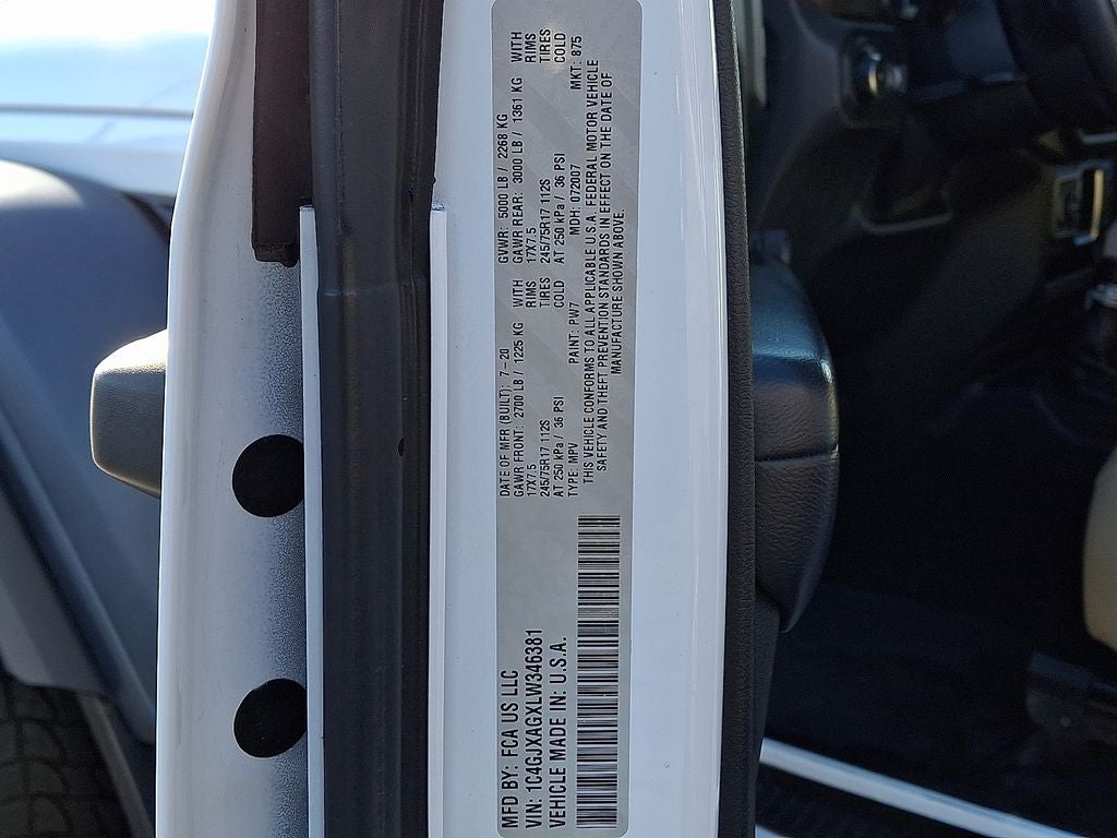 2020 Jeep Wrangler Sport 3.6L V6 24V VVT 4WD 6-Speed Manual Bright White Clearcoat