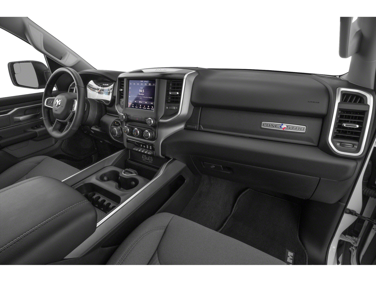 1500 Big Horn/Lone Star, 4D Crew Cab, HEMI 5.7L V8 Multi Displacement VVT, 4WD, 115V Auxiliary Power Outlet, 115V Auxiliary Rear Power Outlet, 2 USB Full Function/Charge Only Media Hub, 2nd Row In Floor Storage Bins, 4 Adjustable Cargo Tie-Down Hooks, 400W Inverter, Air Conditioning ATC w/Dual Zone Control, Auto-Dimming Rear-View Mirror, Bed Utility Group, Big Horn Badge, Big Horn IP Badge, Big Horn Level 2 Equipment Group, Black Premium Power Mirrors, Class IV Receiver Hitch, Dampened Tailgate, Deployable Bed Step, Foam Bottle Insert (Door Trim Panel), Glove Box Lamp, Heated Front Seats, Heated Steering Wheel, ParkSense Front/Rear Park Assist w/Stop, Pick-Up Box Lighting, Power 4-Way Driver Lumbar Adjust, Power 8-Way Driver Seat, Power Adjustable Pedals, Quick Order Package 23Z Big Horn, Radio: Uconnect 4 w/8.4 Display, Rear Dome w/On/Off Switch Lamp, Rear Power Sliding Window, Rear Window Defroster, Security Alarm, SiriusXM Satellite Radio, Spray In Bedliner, Sun Visors w/Illuminated Vanity Mirrors, Universal Garage Door Opener.