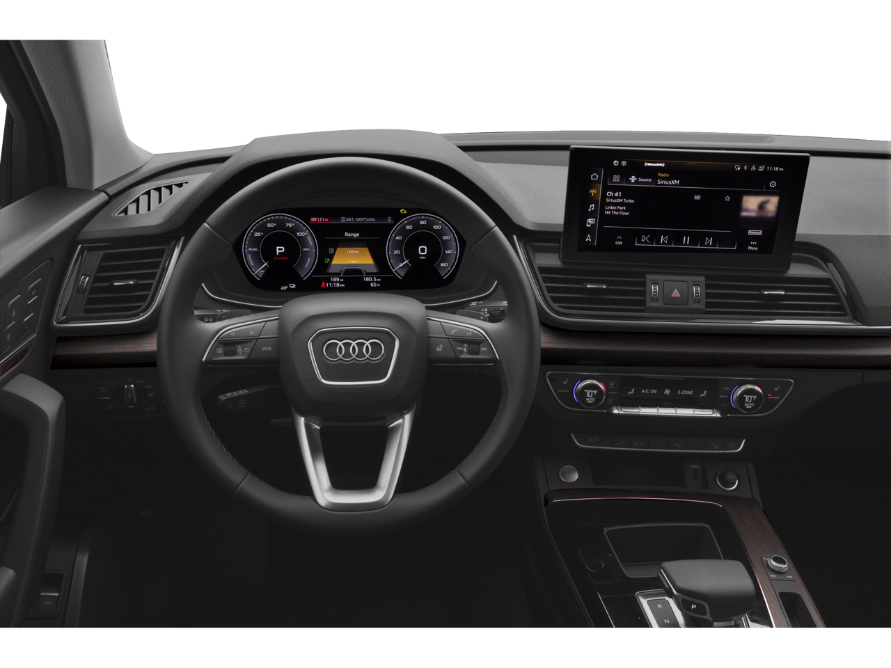 Step inside and be captivated by the Q5 e's luxurious cabin, featuring genuine wood accents, a Leather Shift Knob, and an Audi Sound System. The Automatic Temperature Control, Rear Window Defroster, and Four Wheel Independent Suspension ensure your comfort and control in any driving conditions.