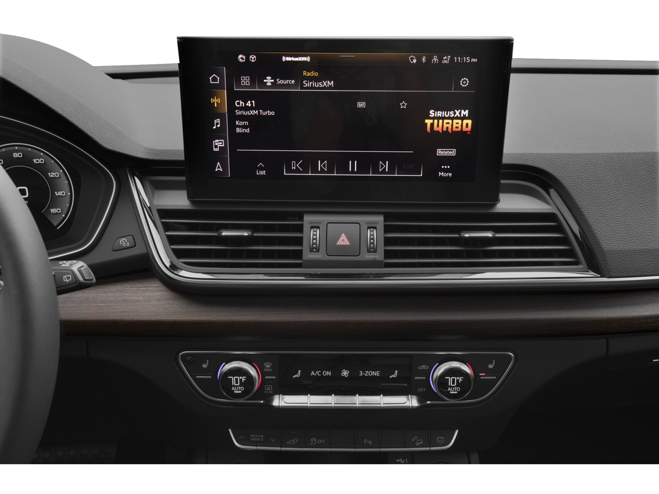 - Radio: Audi Sound System -inc: Audi smartphone interface w/wireless Apple CarPlay, preparation for mobile phone (Bluetooth®), MMI touch display w/10.1" center screen and 2 rear USB charge ports