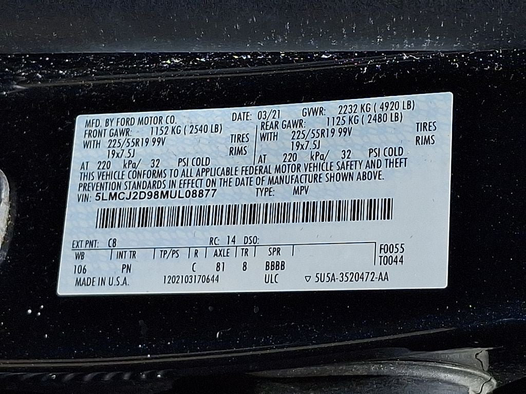 THIS VEHICLE INCLUDES THE FOLLOWING FEATURES AND OPTIONS: Elements Package (Heated Rear Seat, Heated Steering Wheel, Rain Sensing Wipers, and Windshield Wiper De-Icer), Equipment Group 201A, Lincoln Co-Pilot360 Plus Package (360-Degree Camera w/Rear Camera Washer, Active Park Assist Plus, Adaptive Cruise Control w/Traffic Jam Assist, Evasive Steering Assist (ESA), Forward Sensing System, and Reverse Brake Assist), Rear Removable Package Tray, 14 Speakers, 19 Bright Machined Aluminum Wheels, 3.81 Axle Ratio, 4-Wheel Disc Brakes, ABS brakes, Adaptive Suspension, Air Conditioning, All-Weather Floor Liners w/Fr&Rr Carpet Floor Mats, Alloy wheels, AM/FM radio: SiriusXM, Auto High-beam Headlights, Auto tilt-away steering wheel, Auto-dimming door mirrors, Auto-dimming Rear-View mirror, Automatic temperature control, Brake assist, Bumpers: body-color, Cargo Area Protector, Compass, Delay-off headlights, Driver door bin, Driver vanity mirror, Dual front impact airbags, Dual front side impact airbags, Electronic Stability Control, Emergency communication system, Four wheel independent suspension, Front anti-roll bar, Front Bucket Seats, Front Center Armrest, Front dual zone A/C, Front fog lights, Front License Plate Bracket, Front reading lights, Fully automatic headlights, Garage door transmitter: HomeLink, Heated door mirrors, Heated front seats, Illuminated entry, Knee airbag, Leather steering wheel, Low tire pressure warning, Memory seat, Navigation System, Occupant sensing airbag, Outside temperature display, Overhead airbag, Overhead console, Panic alarm, Passenger door bin, Passenger vanity mirror, Perfect Position Seats, Power door mirrors, Power driver seat, Power Liftgate, Power moonroof: Panoramic Vista Roof, Power passenger seat, Power steering, Power windows, Premium Leather Heated Comfort Seats, Radio data system, Radio: Revel Audio System w/HD Radio & MP3, Rear anti-roll bar, Rear reading lights, Rear seat center armrest, Rear window defroster, Rear window wiper, Remote keyless entry, Security system, SiriusXM Radio, Speed control, Speed-sensing steering, Speed-Sensitive Wipers, Split folding rear seat, Spoiler, Steering wheel memory, Steering wheel mounted A/C controls, Steering wheel mounted audio controls, SYNC 3 Communications & Entertainment System, Tachometer, Telescoping steering wheel, Tilt steering wheel, Traction control, Trip computer, Turn signal indicator mirrors, and Variably intermittent wipers. Odometer is 9747 miles below market average! 21/29 City/Highway MPG