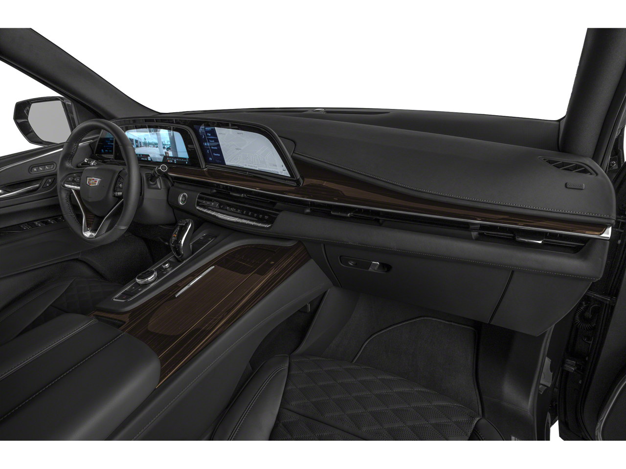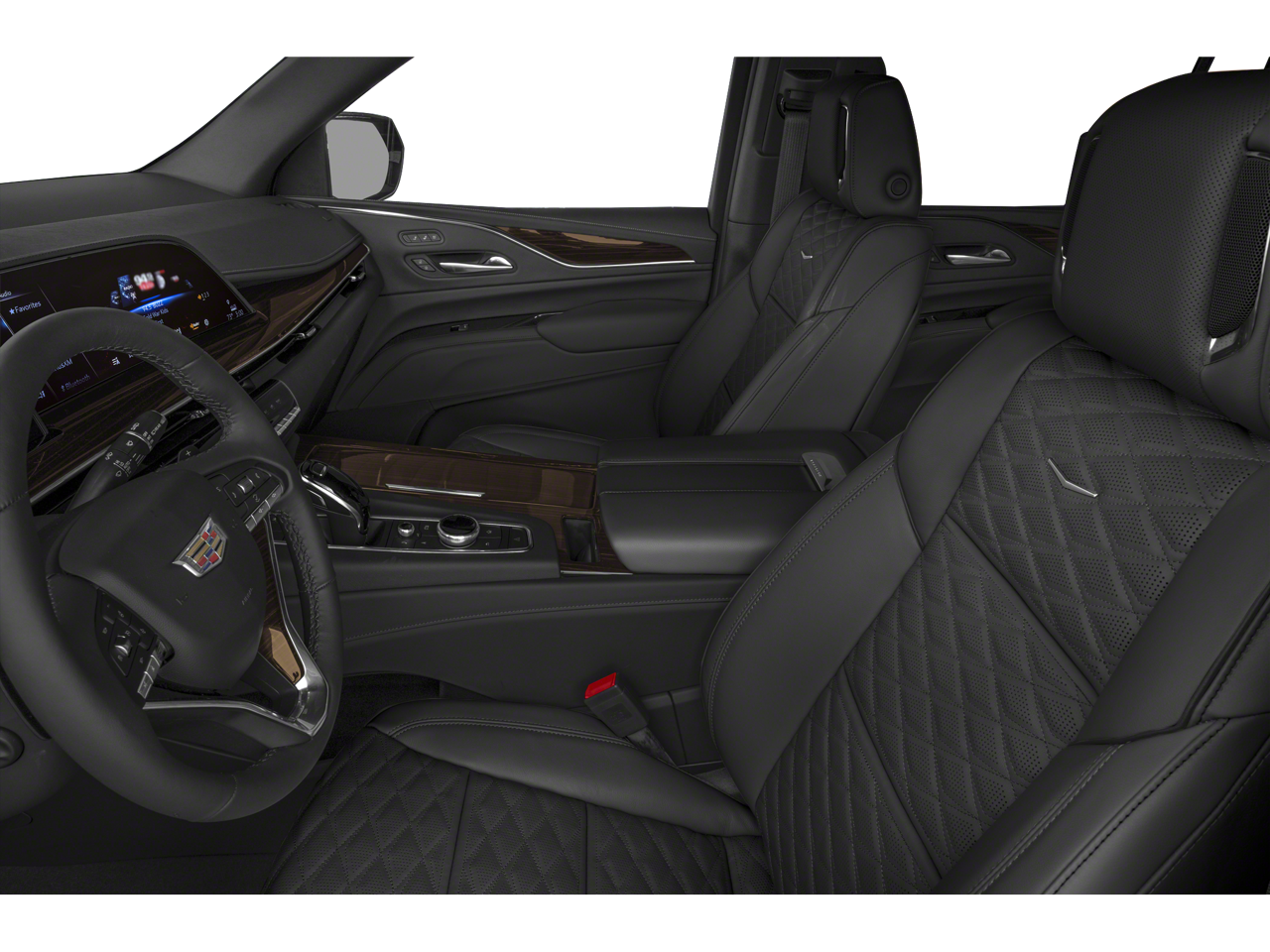 This Vehicle Includes the Following Options: Preferred Equipment Group 1SB (Adaptive Cruise Control, AKG Studio 19-Speaker Audio System, Automatic Seat Belt Tightening, Automatic Stop/Start, Door Lock & Latch Shields, Enhanced Automatic Emergency Braking, Enhanced Automatic Parking Assist, Glass Breakage Sensor, Heated & Ventilated Driver & Front Passenger Seats, Lane Change Alert w/Side Blind Zone Alert, Mechanical Limited-Slip Differential, Power Panoramic Tilt-Sliding Sunroof, Rear Camera Mirror, Rear Camera Mirror Washer, Rear Cross Traffic Alert, Reconfigurable Full-Color Head-Up Display, Reverse Automatic Braking, Running Board Assist Steps, Start/Stop System Disable Button, Theft-Deterrent Alarm System, Vehicle Inclination Sensor, and Vehicle Interior Movement Sensor), 4WD, 16.9 Diagonal OLED Infotainment Screen, 19 Speakers, 2-Presets Memory For Driver Seat Adjuster, 3.23 Axle Ratio, 3rd row seats: split-bench, 4-Wheel Disc Brakes, 8-Way Power Driver Seat Adjuster, 8-Way Power Front Passenger Seat Adjuster, ABS brakes, Air Conditioning, Alloy wheels, AM/FM radio: SiriusXM with 360L, Apple CarPlay/Android Auto, Audio memory, Auto High-beam Headlights, Auto tilt-away steering wheel, Auto-dimming door mirrors, Automatic temperature control, Brake assist, Bumpers: body-color, Compass, Delay-off headlights, Driver door bin, Driver vanity mirror, Dual front impact airbags, Dual front side impact airbags, Electronic Stability Control, Emergency communication system: OnStar and Cadillac connected services capable, Four wheel independent suspension, Front anti-roll bar, Front Bucket Seats, Front Center Armrest w/Storage, Front dual zone A/C, Front License Plate Bracket, Front reading lights, Fully automatic headlights, Garage door transmitter, HD Radio, Heads-Up Display, Heated door mirrors, Heated Driver & Front Passenger Seats, Heated front seats, Heated rear seats, Heated steering wheel, Illuminated entry, Leather Seating Surfaces w/Mini-Chevron Perf Inserts, Leather steering wheel, Low tire pressure warning, Memory seat, Navigation System, Not Equipped w/4-Way Driver & Fr Pass Pwr Lumbar, Not Equipped w/Steering Column Lock, Occupant sensing airbag, Outside temperature display, Overhead airbag, Overhead console, Panic alarm, Passenger door bin, Passenger vanity mirror, Power door mirrors, Power driver seat, Power Liftgate, Power moonroof, Power passenger seat, Power steering, Power windows, Premium Smooth Ride Suspension, Radio data system, Radio: AM/FM/SiriusXM w/Navigation, Rain sensing wipers, Rear air conditioning, Rear anti-roll bar, Rear reading lights, Rear window defroster, Rear window wiper, Remote keyless entry, Roof rack: rails only, Security system, SiriusXM w/360L, Speed control, Split folding rear seat, Spoiler, Steering wheel memory, Steering wheel mounted audio controls, Super Cruise, Tachometer, Teen Driver, Telescoping steering wheel, Tilt steering wheel, Traction control, Trip computer, Turn signal indicator mirrors, Variably intermittent wipers, Ventilated front seats, Voltmeter, Wheels: 22 14-Spoke Alloy w/Polished Finish, and Wireless Apple CarPlay/Wireless Android Auto.