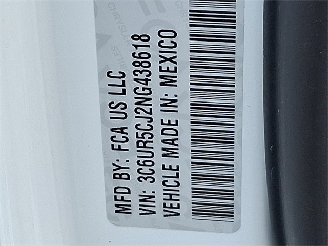 THIS VEHICLE INCLUDES THE FOLLOWING FEATURES AND OPTIONS: Chrome Appearance Group (Bright Front Bumper, Bright Rear Bumper, Center Hub, Chrome Grille Surround, Matte Black Mesh Grille w/Chrome, and Wheels: 18 x 8.0 Steel Chrome Clad), Protection Group, Quick Order Package 2GA Tradesman, 17 x 7.5 Steel Styled Wheels, 2 Way Rear Headrest Seat, 3.73 Axle Ratio, 4 Way Front Headrests, 4-Wheel Disc Brakes, 40/20/40 Split Bench Seat, 6 Speakers, ABS brakes, Active Noise Control System, Air Conditioning, AM/FM radio, Anti-Spin Differential Rear Axle, Black Exterior Mirrors, Brake assist, Compass, Delay-off headlights, Driver door bin, Dual front impact airbags, Dual front side impact airbags, Electric Shift-On-The-Fly Transfer Case, Electronic Stability Control, Electronically Controlled Throttle, Emergency communication system: SiriusXM Guardian, Exterior Mirrors Courtesy Lamps, Exterior Mirrors w/Heating Element, Exterior Mirrors w/Supplemental Signals, Front anti-roll bar, Front Center Armrest w/Storage, Front License Plate Bracket, Front reading lights, Fully automatic headlights, Global Telematics Box Module (TBM), GPS Antenna Input, Heated door mirrors, Heavy Duty Vinyl 40/20/40 Split Bench Seat, Illuminated entry, Integrated Voice Command w/Bluetooth®, Low tire pressure warning, Manual Adjust 4-Way Driver Seat, Mirror Running Lights, MOPAR Spray In Bedliner, Occupant sensing airbag, Outside temperature display, Overhead airbag, Overhead console, ParkView Rear Back-Up Camera, Passenger door bin, Passenger vanity mirror, Power Adjust & Heated Black Tow Mirrors, Power door mirrors, Power steering, Power windows, Radio data system, Radio: Uconnect 3 w/5 Display, Rear anti-roll bar, Rear Folding Seat, Rear step bumper, Selectable Tire Fill Alert, SiriusXM Radio Service, Speed control, Storage Tray, Tachometer, Tilt steering wheel, Tip Start, Tow Hooks, Traction control, Trailer Brake Control, Trailer Light Check, Trailer Tow Mirrors, Variably intermittent wipers, Vendor Painted Cargo Box, Vendor Painted Cargo Box Tracking, and Voltmeter.