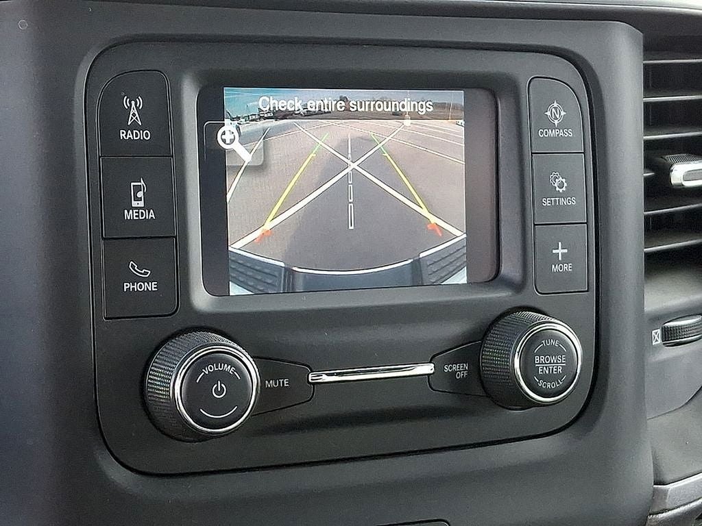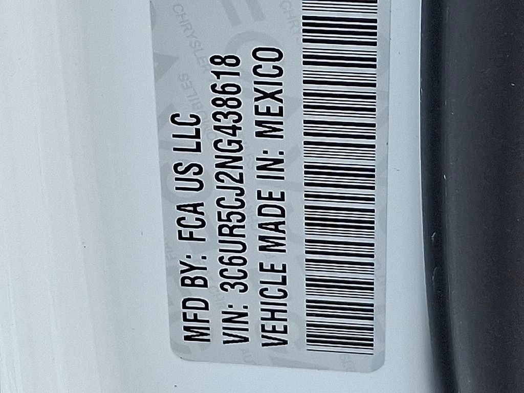 THIS VEHICLE INCLUDES THE FOLLOWING FEATURES AND OPTIONS: Chrome Appearance Group (Bright Front Bumper, Bright Rear Bumper, Center Hub, Chrome Grille Surround, Matte Black Mesh Grille w/Chrome, and Wheels: 18 x 8.0 Steel Chrome Clad), Protection Group, Quick Order Package 2GA Tradesman, 17 x 7.5 Steel Styled Wheels, 2 Way Rear Headrest Seat, 3.73 Axle Ratio, 4 Way Front Headrests, 4-Wheel Disc Brakes, 40/20/40 Split Bench Seat, 6 Speakers, ABS brakes, Active Noise Control System, Air Conditioning, AM/FM radio, Anti-Spin Differential Rear Axle, Black Exterior Mirrors, Brake assist, Compass, Delay-off headlights, Driver door bin, Dual front impact airbags, Dual front side impact airbags, Electric Shift-On-The-Fly Transfer Case, Electronic Stability Control, Electronically Controlled Throttle, Emergency communication system: SiriusXM Guardian, Exterior Mirrors Courtesy Lamps, Exterior Mirrors w/Heating Element, Exterior Mirrors w/Supplemental Signals, Front anti-roll bar, Front Center Armrest w/Storage, Front License Plate Bracket, Front reading lights, Fully automatic headlights, Global Telematics Box Module (TBM), GPS Antenna Input, Heated door mirrors, Heavy Duty Vinyl 40/20/40 Split Bench Seat, Illuminated entry, Integrated Voice Command w/Bluetooth®, Low tire pressure warning, Manual Adjust 4-Way Driver Seat, Mirror Running Lights, MOPAR Spray In Bedliner, Occupant sensing airbag, Outside temperature display, Overhead airbag, Overhead console, ParkView Rear Back-Up Camera, Passenger door bin, Passenger vanity mirror, Power Adjust & Heated Black Tow Mirrors, Power door mirrors, Power steering, Power windows, Radio data system, Radio: Uconnect 3 w/5 Display, Rear anti-roll bar, Rear Folding Seat, Rear step bumper, Selectable Tire Fill Alert, SiriusXM Radio Service, Speed control, Storage Tray, Tachometer, Tilt steering wheel, Tip Start, Tow Hooks, Traction control, Trailer Brake Control, Trailer Light Check, Trailer Tow Mirrors, Variably intermittent wipers, Vendor Painted Cargo Box, Vendor Painted Cargo Box Tracking, and Voltmeter.