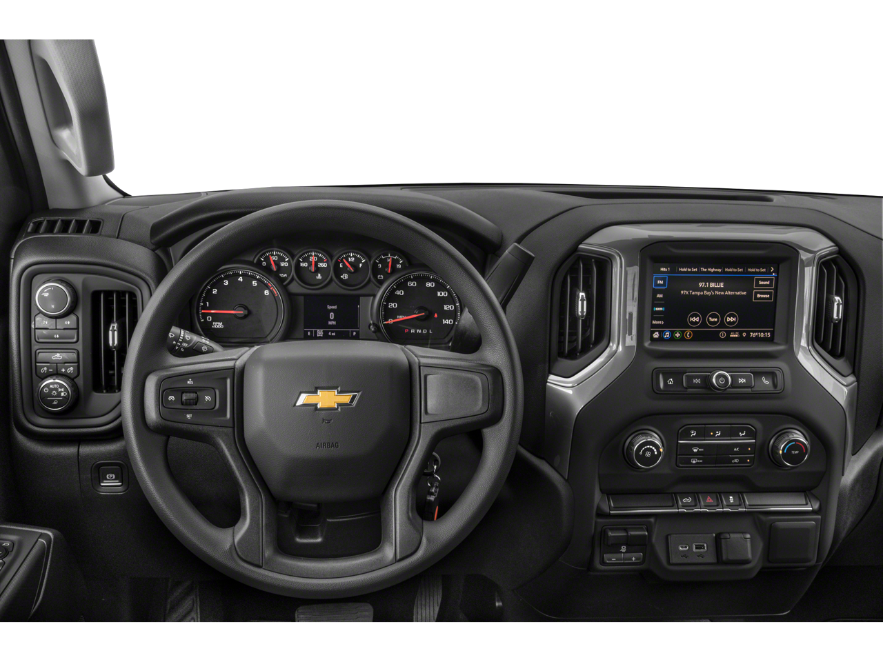 This Vehicle Includes the Following Options: Custom Convenience Package (Electric Rear-Window Defogger, EZ Lift Power Lock & Release Tailgate, Integrated Trailer Brake Controller, LED Cargo Area Lighting, and Remote Vehicle Starter System), Custom Value Package (Auto-Dimming Inside Rear-View Mirror and Power-Adjustable Vertical Trailering Mirrors), Infotainment Package (Chevrolet Connected Access Capable, Compass, OnStar & Chevrolet Connected Services Capable, SiriusXM Radio, and Wi-Fi Hotspot Capable), Preferred Equipment Group 1CX (170 Amp Alternator, 2-Speed Electronic Shift Transfer Case, 3.5 Diagonal Monochromatic Display DIC, Black Mirror Caps, Bluetooth® For Phone, Body Color Front Grille, Color-Keyed Carpeting Floor Covering, Deep-Tinted Glass, Electronic Cruise Control w/Set & Resume Speed, Front Rubberized Vinyl Floor Mats, Heated Vertical Trailering Mirrors, Locking Tailgate, Manual Tailgate Function w/No EZ Lift, Manual Tilt-Wheel Steering Column, Power Door Locks, Power Front Windows w/Driver Express Up/Down, Power Front Windows w/Passenger Express Down, Power Rear Windows w/Express Down, Rear 60/40 Folding Bench Seat (Folds Up), Rear Rubberized Vinyl Floor Mats, Remote Keyless Entry, and Standard Tailgate), Suspension Package, 10-Speed Automatic, 4WD, Jet Black Cloth, 120-Volt Bed Mounted Power Outlet, 120-Volt Instrument Panel Power Outlet, 220 Amp Alternator, 3 Years of Remote Access, 4-Wheel Disc Brakes, 6 Speakers, 6-Speaker Audio System, 720 Cold-Cranking Amps Heavy-Duty Battery, ABS brakes, Air Conditioning, Alloy wheels, AM/FM radio, Apple CarPlay/Android Auto, Bed View Camera, Black Chevytec Spray-On Bedliner, Brake assist, Cloth Seat Trim, Delay-off headlights, Driver door bin, Dual front impact airbags, Dual front side impact airbags, Electronic Stability Control, Engine Block Heater, Exhaust Brake, Front 40/20/40 Split-Bench Seats, Front anti-roll bar, Front Center Armrest w/Storage, Front reading lights, Front wheel independent suspension, Fully automatic headlights, Heated door mirrors, Illuminated entry, Inside Rear-View Auto-Dimming Mirror, Low tire pressure warning, Occupant sensing airbag, Outside temperature display, Overhead airbag, Overhead console, Panic alarm, Passenger door bin, Passenger vanity mirror, Power door mirrors, Power steering, Power windows, Premium audio system: Chevrolet Infotainment 3, Radio: Chevrolet Infotainment 3 System, Rear reading lights, Rear step bumper, Remote keyless entry, Speed control, Split folding rear seat, Tachometer, Tilt steering wheel, Traction control, Trip computer, Turn signal indicator mirrors, Variably intermittent wipers, Voltmeter, Wheels: 20 10-Spoke Machined Aluminum, and Winter Grille Cover.