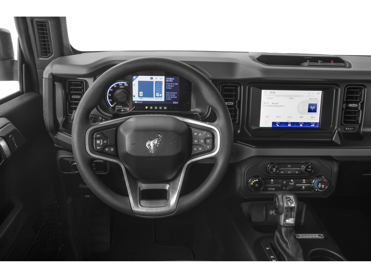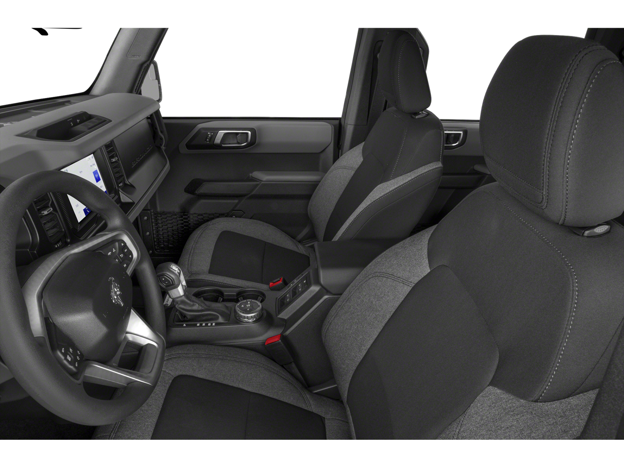 The interior of this Bronco is designed with your comfort and convenience in mind. Enjoy the premium features, including the hard top sound deadening headliner, rear-window defroster and washer, and the front row top panels storage bag. Stay connected with the advanced SYNC 4 infotainment system, which provides seamless integration with your smartphone and a wealth of entertainment and navigation options.
