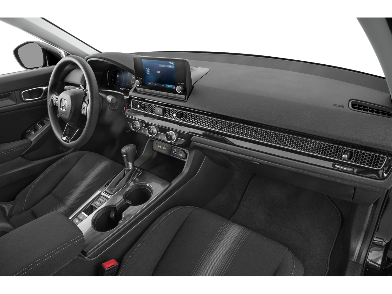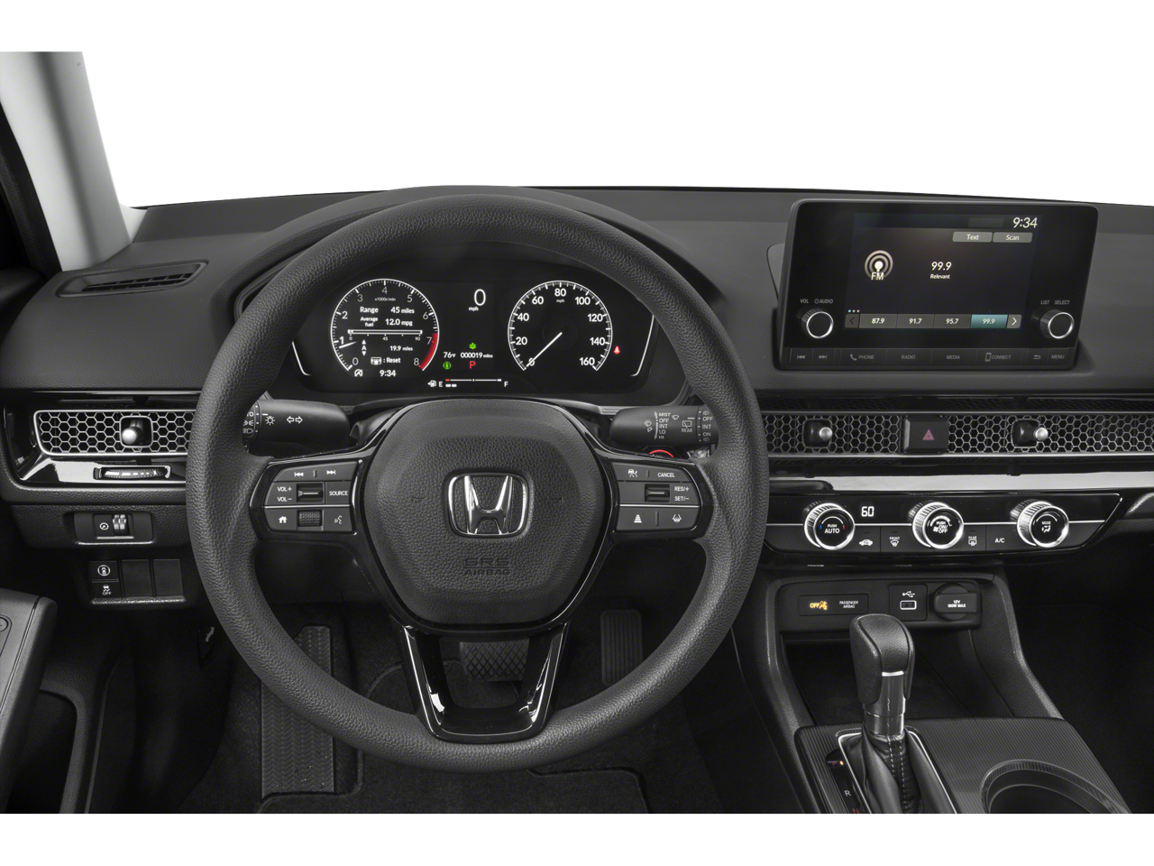 THIS VEHICLE INCLUDES THE FOLLOWING FEATURES AND OPTIONS: Cloth, 16 Alloy Wheels, 4 Speakers, 4-Wheel Disc Brakes, ABS brakes, Adaptive Cruise Control: Adaptive Cruise Control (ACC) with Low-Speed Follow, Air Conditioning, Alloy wheels, AM/FM radio, Apple CarPlay/Android Auto, Auto High-beam Headlights, Automatic temperature control, Brake assist, Bumpers: body-color, Delay-off headlights, Driver door bin, Driver vanity mirror, Dual front impact airbags, Dual front side impact airbags, Electronic Stability Control, Emergency communication system: HondaLink, Exterior Parking Camera Rear, Fabric Seating Surfaces, Four wheel independent suspension, Front anti-roll bar, Front Bucket Seats, Front Center Armrest, Front reading lights, Fully automatic headlights, Illuminated entry, Knee airbag, Lane departure: Lane Keeping Assist System (LKAS) active, Low tire pressure warning, Occupant sensing airbag, Outside temperature display, Overhead airbag, Panic alarm, Passenger door bin, Passenger vanity mirror, Power door mirrors, Power steering, Power windows, Radio data system, Radio: 160-Watt Audio System, Rear anti-roll bar, Rear side impact airbag, Rear window defroster, Rear window wiper, Remote keyless entry, Security system, Speed control, Speed-sensing steering, Split folding rear seat, Steering wheel mounted audio controls, Tachometer, Telescoping steering wheel, Tilt steering wheel, Traction control, Trip computer, and Voltmeter.
