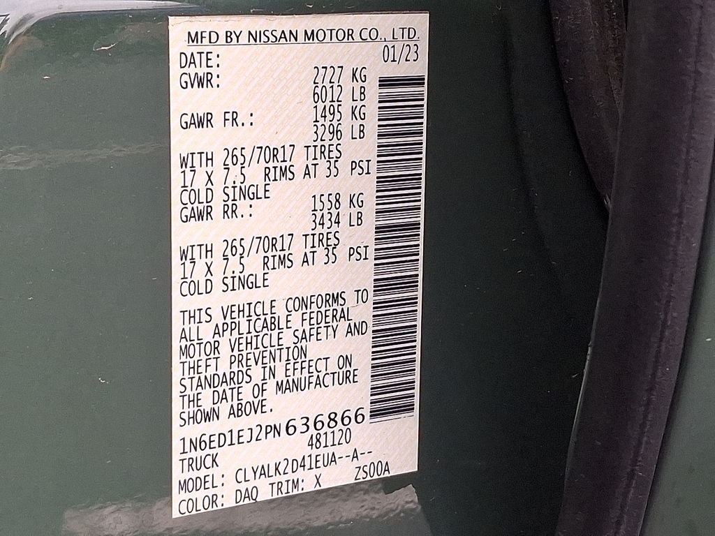 THIS VEHICLE INCLUDES THE FOLLOWING FEATURES AND OPTIONS: Tow Package, 17 Alloy Wheels, 3.692 Axle Ratio, 4-Wheel Disc Brakes, 6 Speakers, ABS brakes, Air Conditioning, Alloy wheels, AM/FM radio: SiriusXM, Anti-whiplash front head restraints, Automatic temperature control, Brake assist, Bumpers: body-color, Carpeted Floor Mats, Delay-off headlights, Driver door bin, Driver vanity mirror, Dual front impact airbags, Dual front side impact airbags, Electronic Stability Control, Electronic Tailgate Lock, Emergency communication system: NissanConnect Services, Front anti-roll bar, Front Bucket Seats, Front Center Armrest, Front dual zone A/C, Front fog lights, Front reading lights, Front wheel independent suspension, Fully automatic headlights, Illuminated entry, Knee airbag, Leather Shift Knob, Low tire pressure warning, Navigation system: Nissan Navigation with Voice Recognition, Occupant sensing airbag, Off-Road Style Step Rails, Overhead airbag, Overhead console, Panic alarm, Passenger door bin, Passenger vanity mirror, Power door mirrors, Power driver seat, Power steering, Power windows, PRO Embroidered Premium Cloth Seat Trim, PRO-X Mud Flaps, Radio data system, Radio: SXM/AM/FM/AUX/USB Audio System w/6 Speakers, Rear anti-roll bar, Rear seat center armrest, Rear step bumper, Remote keyless entry, Security system, Speed control, Speed-sensing steering, Split folding rear seat, Steering wheel mounted audio controls, Tachometer, Tilt steering wheel, Traction control, Trip computer, Variably intermittent wipers, and Voltmeter. Odometer is 10191 miles below market average!