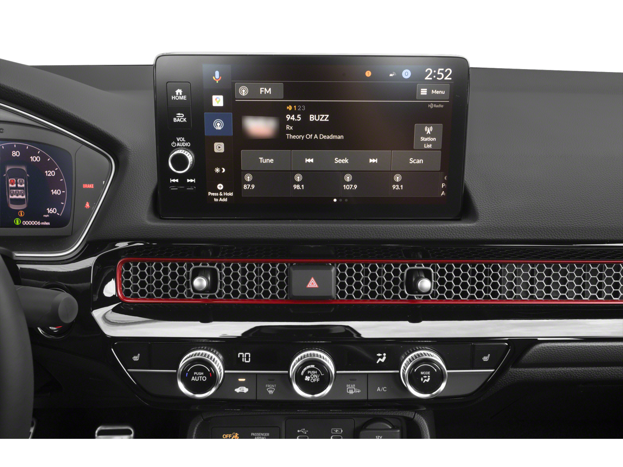 - Radio: BOSE Premium Sound System -inc: 12 speakers w/subwoofer, 9" color touchscreen, wireless Apple CarPlay and Android Auto compatibility, SiriusXM (SiriusXM requires a subscription after any trial period, If you decide to continue your SiriusXM service at the end of your trial subscription, the plan you choose will automatically renew and bill at then-current rates until you call SiriusXM at 1-866-635-2349 to cancel, See our customer agreement for complete terms at www.siriusxm.com, Fees and programming subject to change, Available in the 48 contiguous United States and D.C, SiriusXM and all related marks and logos are trademarks of SiriusXM Radio Inc.), HD Radio, Bluetooth HandsFreeLink and streaming audio, HondaLink, SMS text message function (Your wireless carrier's rate plans apply, State or local laws may limit use of texting feature.), Speed-sensitive Volume Compensation (SVC), Radio Data System (RDS) and 2.5-amp USB smartphone/audio interface port in front console