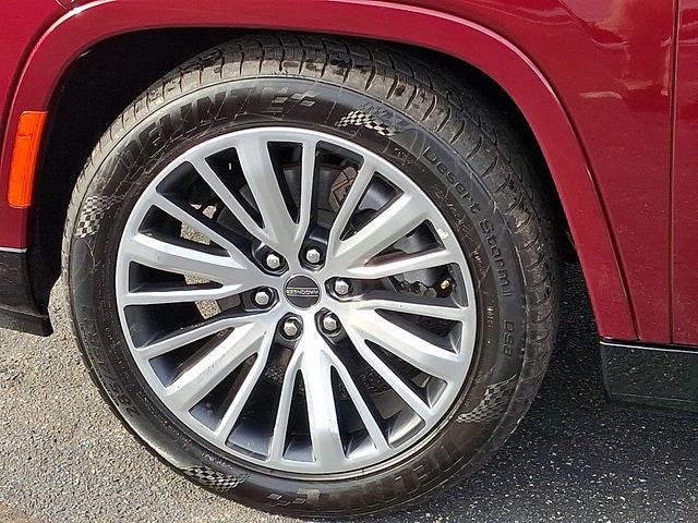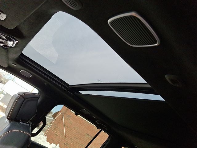 THIS VEHICLE INCLUDES THE FOLLOWING FEATURES AND OPTIONS: Two Tone Paint Group, 3.92 Rear Axle Ratio, 3rd row seats: bench, 4-Wheel Disc Brakes, ABS brakes, Adjustable pedals, Air Conditioning, Alloy wheels, AM/FM radio: SiriusXM with 360L, Anti-whiplash front head restraints, Apple CarPlay/Android Auto, Audio memory, Auto High-beam Headlights, Auto-dimming door mirrors, Auto-dimming Rear-View mirror, Auto-leveling suspension, Automatic temperature control, Brake assist, Bumpers: body-color, Compass, Delay-off headlights, Driver door bin, Driver vanity mirror, Driver's Seat Mounted Armrest, Dual front impact airbags, Dual front side impact airbags, Electronic Stability Control, Emergency communication system, Four wheel independent suspension, Front anti-roll bar, Front Bucket Seats, Front Center Armrest w/Storage, Front dual zone A/C, Front fog lights, Front reading lights, Fully automatic headlights, Garage door transmitter, Genuine wood console insert, Genuine wood dashboard insert, Genuine wood door panel insert, Heads-Up Display, Heated door mirrors, Heated front seats, Heated rear seats, Heated steering wheel, Illuminated entry, Knee airbag, Leather steering wheel, Low tire pressure warning, Memory seat, Navigation System, Night vision lights, Normal Duty Suspension, Occupant sensing airbag, Outside temperature display, Overhead airbag, Overhead console, Panic alarm, Passenger door bin, Passenger seat mounted armrest, Passenger vanity mirror, Pedal memory, Power adjustable front head restraints, Power door mirrors, Power driver seat, Power Liftgate, Power moonroof, Power passenger seat, Power steering, Power windows, Premium Leather Trimmed Bucket Seats, Radio data system, Radio: Uconnect 5 Nav w/12.0 Display, Rain sensing wipers, Rear air conditioning, Rear anti-roll bar, Rear dual zone A/C, Rear reading lights, Rear seat center armrest, Rear window defroster, Rear window wiper, Reclining 3rd row seat, Remote keyless entry, Roof rack, Security system, Speed control, Speed-sensing steering, Speed-Sensitive Wipers, Split folding rear seat, Steering wheel memory, Steering wheel mounted audio controls, Tachometer, Telescoping steering wheel, Tilt steering wheel, Traction control, Trip computer, Turn signal indicator mirrors, Variably intermittent wipers, Ventilated front seats, Ventilated rear seats, Voltmeter, and Wheels: 22 x 9.0 Premium 4 Aluminum.