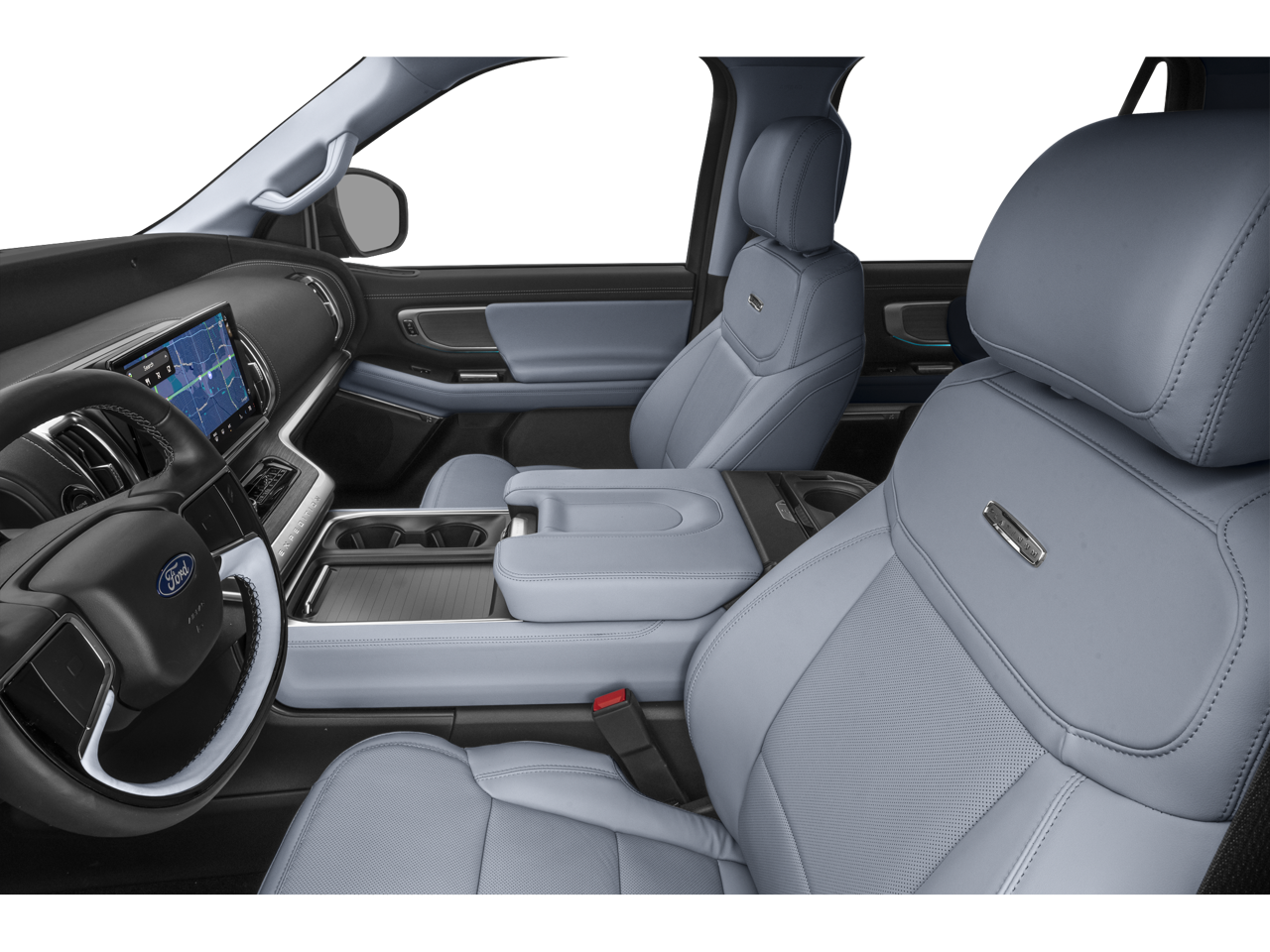 THIS VEHICLE INCLUDES THE FOLLOWING FEATURES AND OPTIONS: Connectivity Package (One-Time Purchase), Equipment Group 600A Standard Package (2nd Row Power-Folding Captain's Chairs), 4WD, 10 Speakers, 3.73 Axle Ratio, 3rd row seats: split-bench, 4-Wheel Disc Brakes, ABS brakes, Adjustable pedals, Air Conditioning, Alloy wheels, AM/FM radio: SiriusXM with 360L, Apple CarPlay/Android Auto, Auto High-beam Headlights, Auto-dimming door mirrors, Auto-dimming Rear-View mirror, Automatic temperature control, BlueCruise Equipped (1-Year Plan), Brake assist, Bumpers: body-color, Compass, Delay-off headlights, Driver door bin, Driver vanity mirror, Dual front impact airbags, Dual front side impact airbags, Electronic Stability Control, Emergency communication system: 911 Assist, Exterior Parking Camera Rear, Floor Liners, Front & Second Rows (Tray Style), Four wheel independent suspension, Front anti-roll bar, Front Bucket Seats, Front Center Armrest, Front dual zone A/C, Front reading lights, Fully automatic headlights, Garage door transmitter, Genuine wood dashboard insert, Genuine wood door panel insert, Heated & Ventilated Leather Front Captain's Chairs, Heated door mirrors, Heated front seats, Heated rear seats, Heated steering wheel, Illuminated entry, Leather steering wheel, Low tire pressure warning, Memory seat, Navigation System, Occupant sensing airbag, Outside temperature display, Overhead airbag, Overhead console, Panic alarm, Passenger door bin, Passenger vanity mirror, Pedal memory, Power door mirrors, Power driver seat, Power moonroof: Vista Roof, Power passenger seat, Power steering, Power windows, Radio data system, Radio: B&O Sound System by Bang & Olufsen, Rain sensing wipers, Rear air conditioning, Rear anti-roll bar, Rear reading lights, Rear window defroster, Rear window wiper, Reclining 3rd row seat, Remote keyless entry, Security system, SiriusXM w/360L, Speed control, Speed-sensing steering, Speed-Sensitive Wipers, Split folding rear seat, Spoiler, Steering wheel memory, Steering wheel mounted audio controls, Tachometer, Telescoping steering wheel, Tilt steering wheel, Traction control, Trip computer, Turn signal indicator mirrors, Variably intermittent wipers, Ventilated front seats, Voltmeter, and Wheels: 20 Ebony Bright Machined Aluminum.