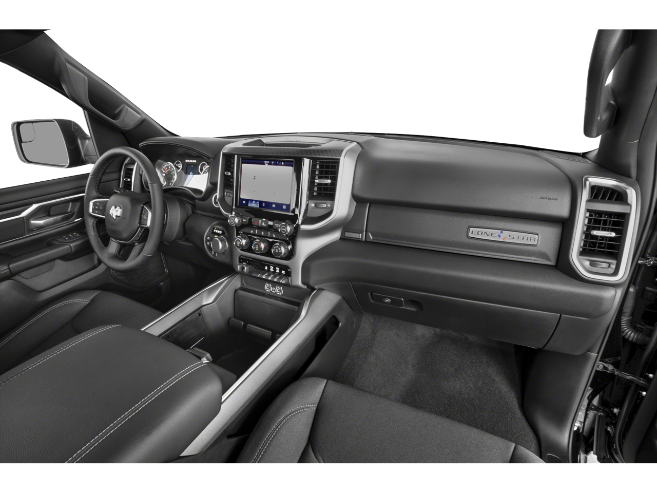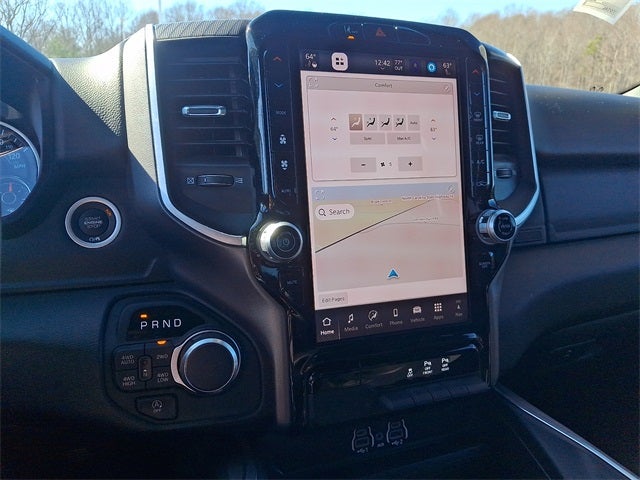 THIS VEHICLE INCLUDES THE FOLLOWING FEATURES AND OPTIONS: Big Horn Level 2 Equipment Group (115V Auxiliary Power Outlet, 115V Auxiliary Rear Power Outlet, 12 Touchscreen Display, 2nd Row In Floor Storage Bins, 400W Inverter, 4G LTE Wi-Fi Hot Spot, 9 Amplified Speakers w/Subwoofer, Air Conditioning ATC w/Dual Zone Control, Apple CarPlay, Auto Power-Folding Mirrors, Auto-Dimming Exterior Driver Mirror, Auto-Dimming Rear-View Mirror, Black Exterior Mirrors, Black Premium Power Mirrors, Cluster 7.0 TFT Color Display, Configurable Drive Mode, Connected Travel & Traffic Services, Connectivity - US/Canada, Convex Wide-Angle Exterior Mirror Insert, Exterior Mirrors Courtesy Lamps, Exterior Mirrors w/Heating Element, Exterior Mirrors w/Supplemental Signals, Glove Box Lamp, Google Android Auto, GPS Antenna Input, GPS Navigation, HD Radio, Heated Front Seats, Heated Steering Wheel, Integrated Voice Command w/Bluetooth®, Leather Wrapped Steering Wheel, LED Dome Lamp w/On/Off Switch, LED Footwell Lighting, Media Hub w/2 Charge Only USBs, Overhead LED Lamps, Power 2-Way Driver Lumbar Adjust, Power Adjust 8-Way Driver Seat, Power Adjustable Pedals, Premium Overhead Console, Radio: Uconnect 5 Nav w/12.0 Display, Rear Power Sliding Window, Rear Window Defroster, Remote Tailgate Release, Security Alarm, SiriusXM w/360L, Steering Wheel Mounted Audio Controls, Sun Visors w/Illuminated Vanity Mirrors, Universal Garage Door Opener, and USB Host Flip), Quick Order Package 21Z Big Horn, Quick Order Package 23Z Big Horn (Big Horn Badge), 3 Rear Seat Head Restraints, 4 Way Front Headrests, 4-Wheel Disc Brakes, 6 Speakers, ABS brakes, Air Conditioning, Alloy wheels, AM/FM radio, Apple CarPlay/Android Auto, Auto High-beam Headlights, Brake assist, Bumpers: chrome, Cloth Bench Seat, Compass, Delay-off headlights, Driver door bin, Dual front impact airbags, Dual front side impact airbags, Electronic Stability Control, Front anti-roll bar, Front Center Armrest w/Storage, Front fog lights, Front License Plate Bracket, Front reading lights, Front Seat Back Map Pockets, Front wheel independent suspension, Fully automatic headlights, Heated door mirrors, Illuminated entry, Low tire pressure warning, Manual Adjust 4-Way Front Passenger Seat, Manual Folding Exterior Mirrors, Manufacturer's Statement of Origin, Occupant sensing airbag, Outside temperature display, Overhead airbag, Overhead console, Panic alarm, ParkView Rear Back-Up Camera, Passenger door bin, Passenger vanity mirror, Power door mirrors, Power steering, Power windows, Radio data system, Radio: Uconnect 5 W w/8.4 Display, RAM Grille Badge - Chrome, Rear 60/40 Folding Seat, Rear anti-roll bar, Rear seat center armrest, Rear step bumper, Remote keyless entry, Speed control, Split folding rear seat, Supplier Part Tracking (J-1), Tachometer, Telescoping steering wheel, Tilt steering wheel, Traction control, Trip computer, Variably intermittent wipers, Voltmeter, and Wheels: 18 x 8 Cast-Aluminum Painted.