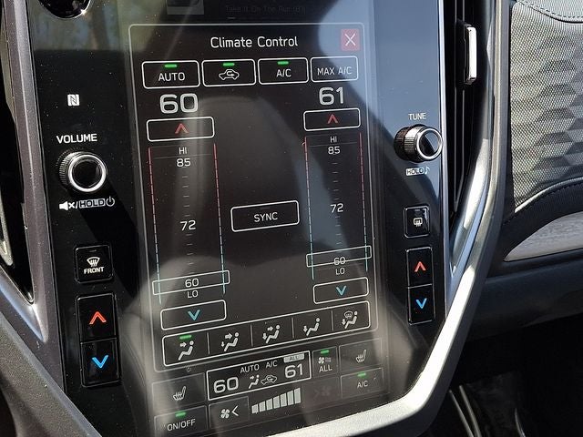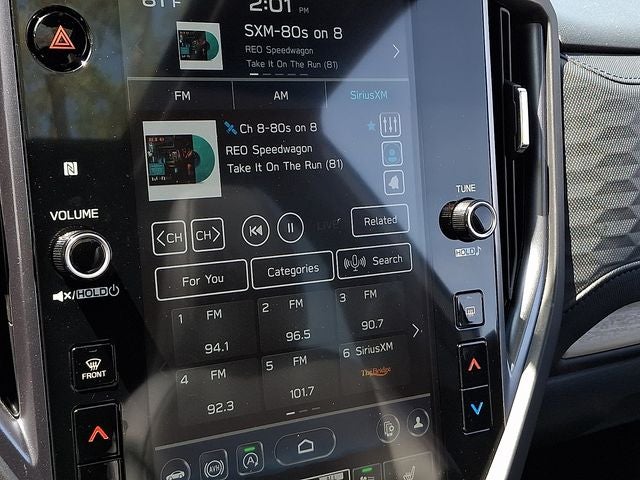 - Radio: Subaru 11.6" Multimedia Plus System -inc: valet mode, integrated center information display, AM/FM stereo HD Radio, multi-touch gesture high resolution display screen, voice activated controls, Bluetooth® audio streaming and hands-free phone connectivity w/SMS text messaging (refer to Subaru.com for cellphone compatibility), iPod control capability, smartphone integration: Android Auto and Apple CarPlay w/full screen view and wireless connection, SiriusXM satellite radio w/360L (free 4-month trial subscription included), USB and Over The Air (OTA) audio system update, steering wheel controls, 6 speakers, 3.5mm auxiliary input jack and roof mounted audio and satellite antenna